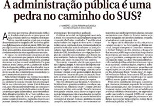 Artigo assinado pelo secretário de Estado da Saúde do Distrito Federal, Humberto Fonseca, publicado no jornal Correio Braziliense no dia oito de maior de 2018 analisa a administração pública no Brasil, em especial na saúde. Nele, Fonseca aponta que novos modelos, como o de Organizações Sociais, são úteis para responder às necessidades da população, afirmando ainda que o Sistema Único de Saúde estará em perigo se não forem promovidas as mudanças necessárias para corrigir os rumos da administração pública no Brasil. De minha parte, acho que Humberto está certo!